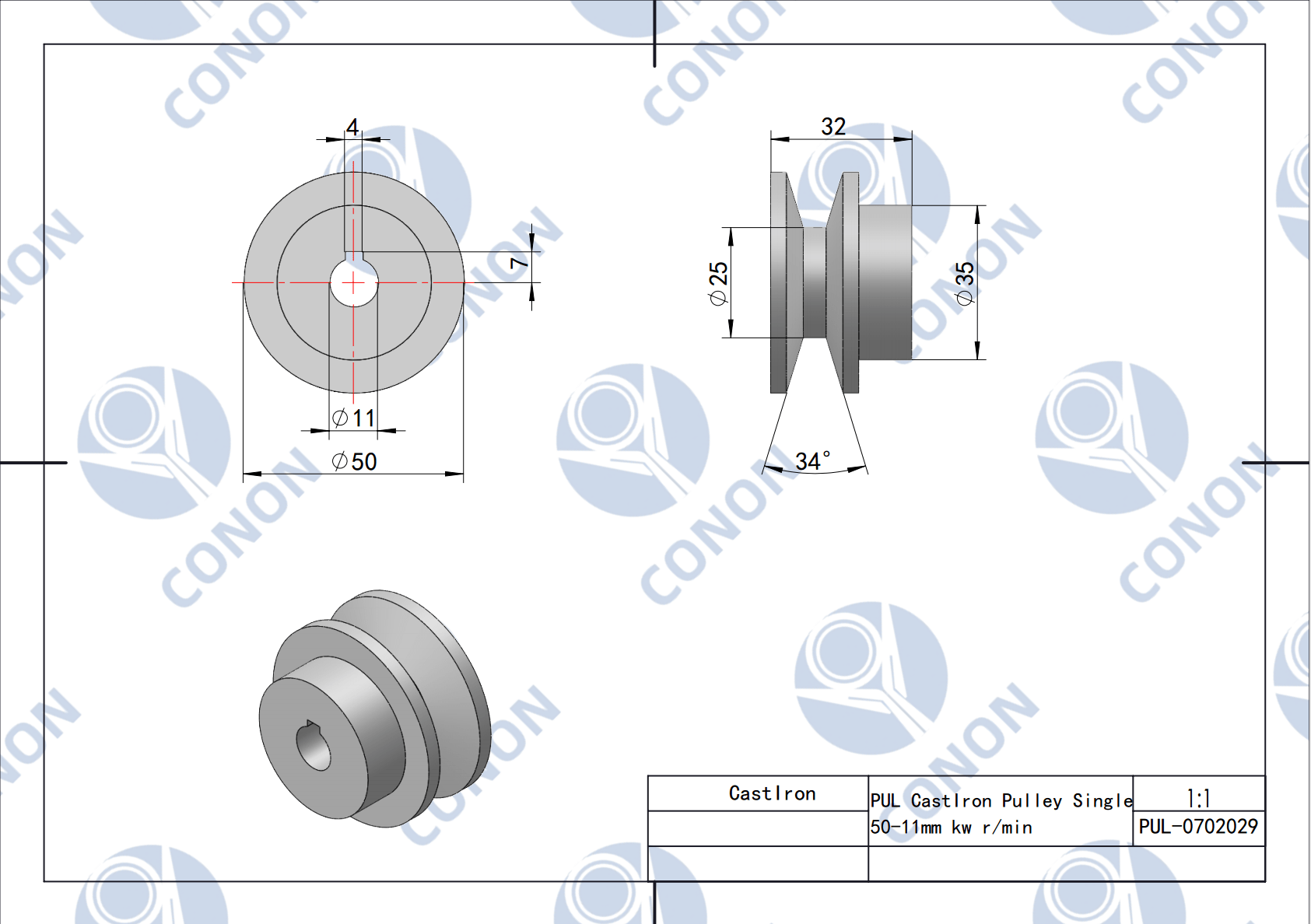 Single groove Pulley 50mm shaft size 11mm for electric motor Cast Iron Made