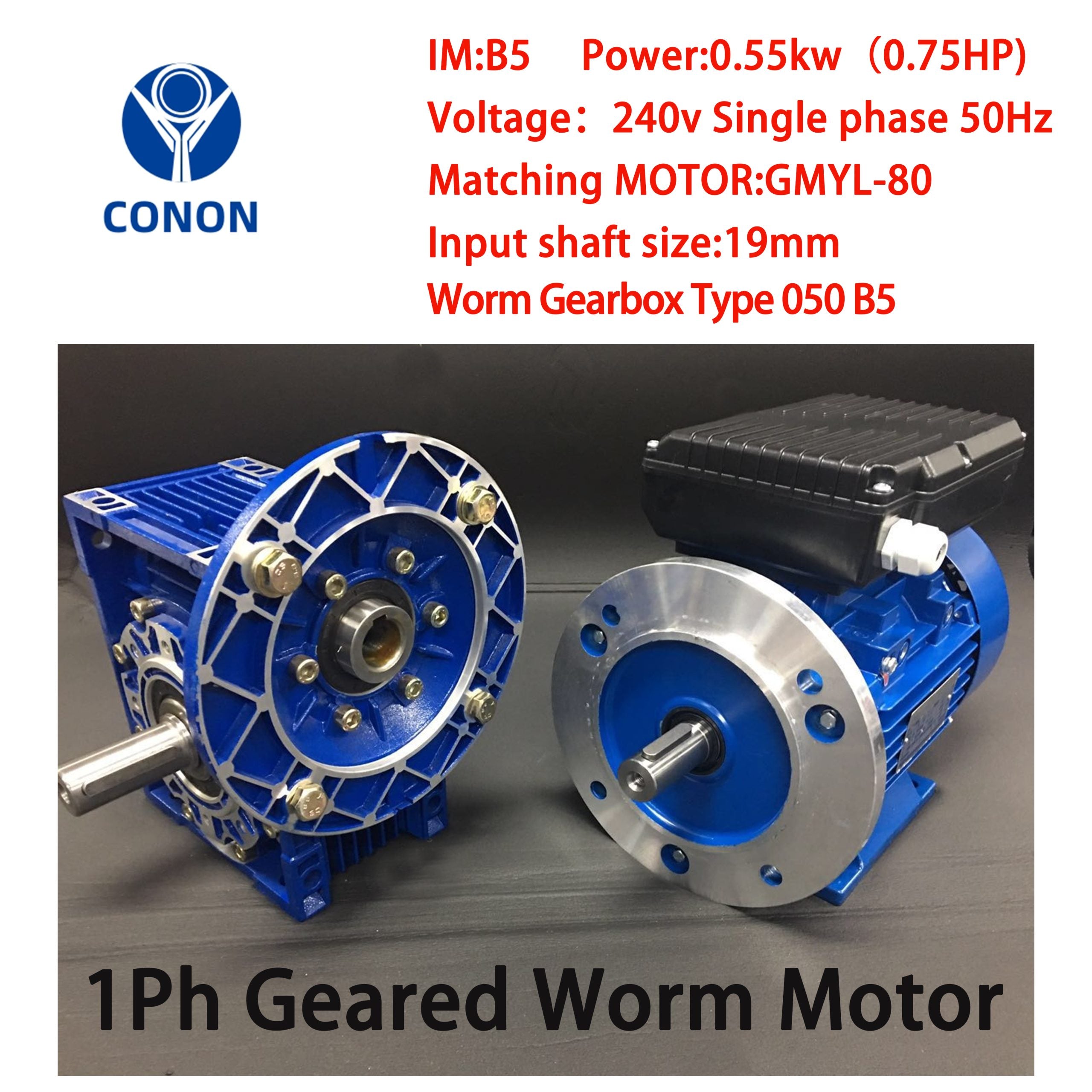 Single Phase 0.55kW 0.75HP 1400rpm Electric Motor & Worm Gearbox Type 063