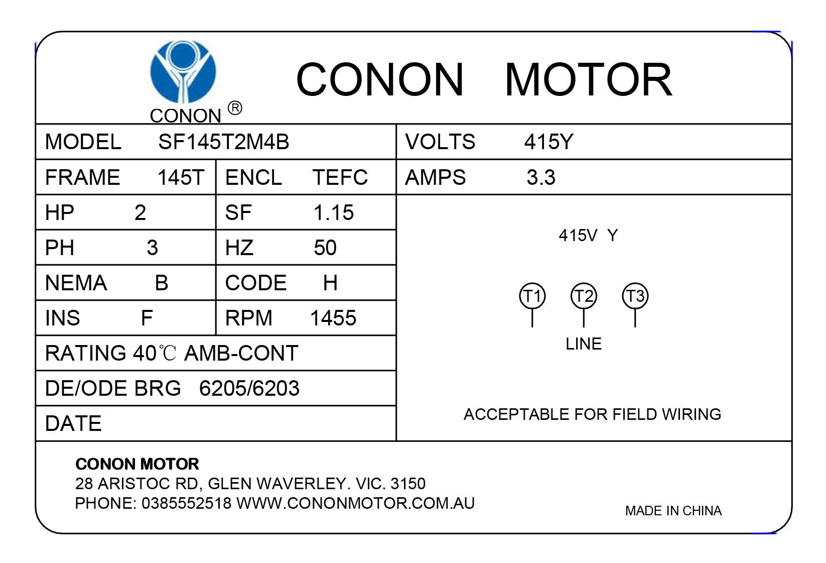 Three Phase NEMA Electric Motor 415V 1.5kw 2HP 1400rpm Frame 145T TEFC IP44