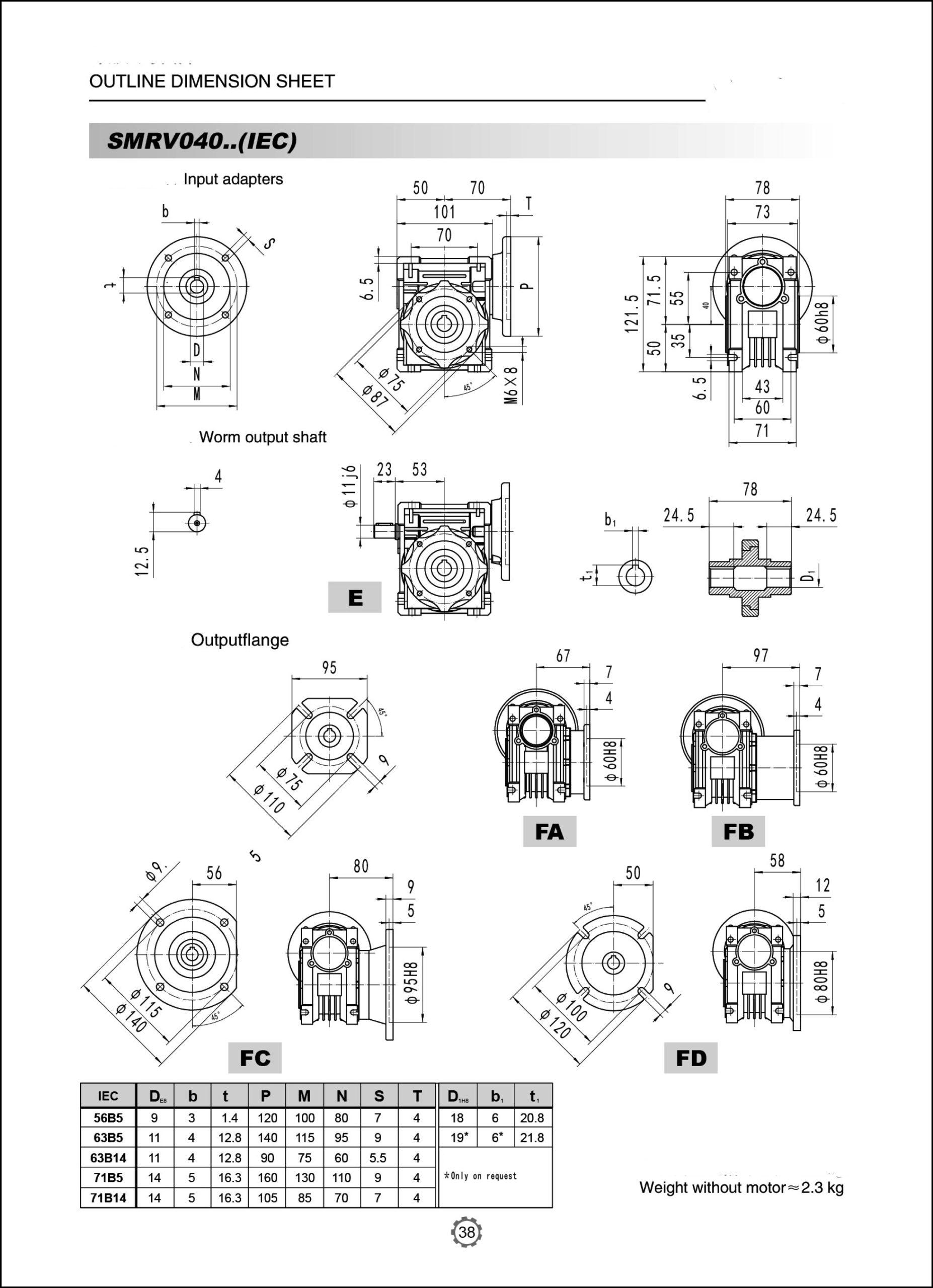 Worm Drive Gearbox NMRV040 10:1 ratio B5 Flange 14mm input shaft Speed reducer