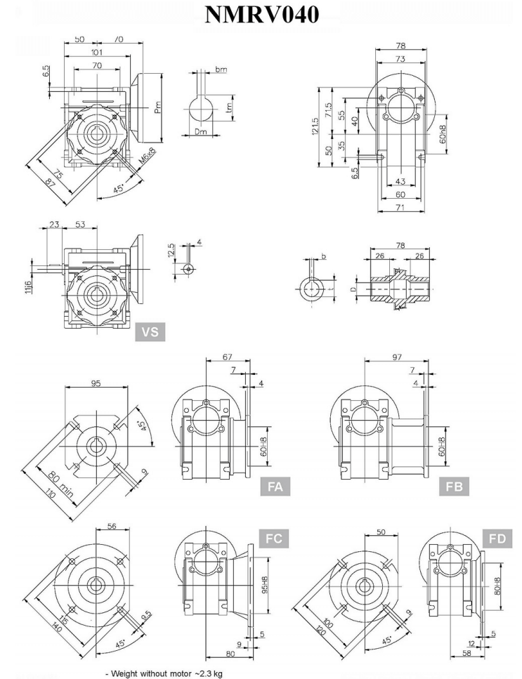 Worm Drive Gearbox NMRV040 80:1 ratio B5 Flange 11mm input shaft Speed reducer