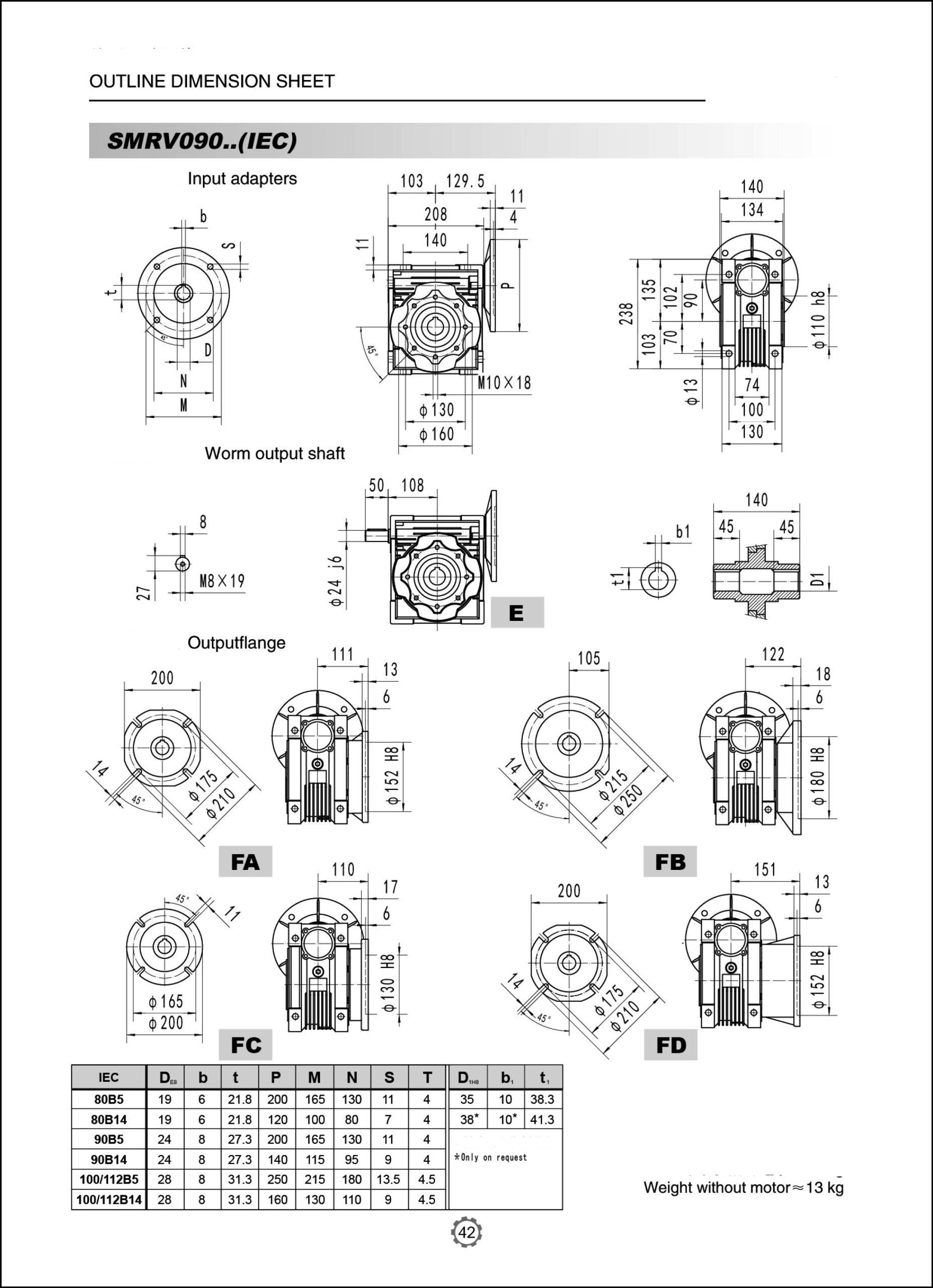 Worm Drive Gearbox NMRV090 10:1 ratio B5 Flange 28mm input shaft Speed reducer