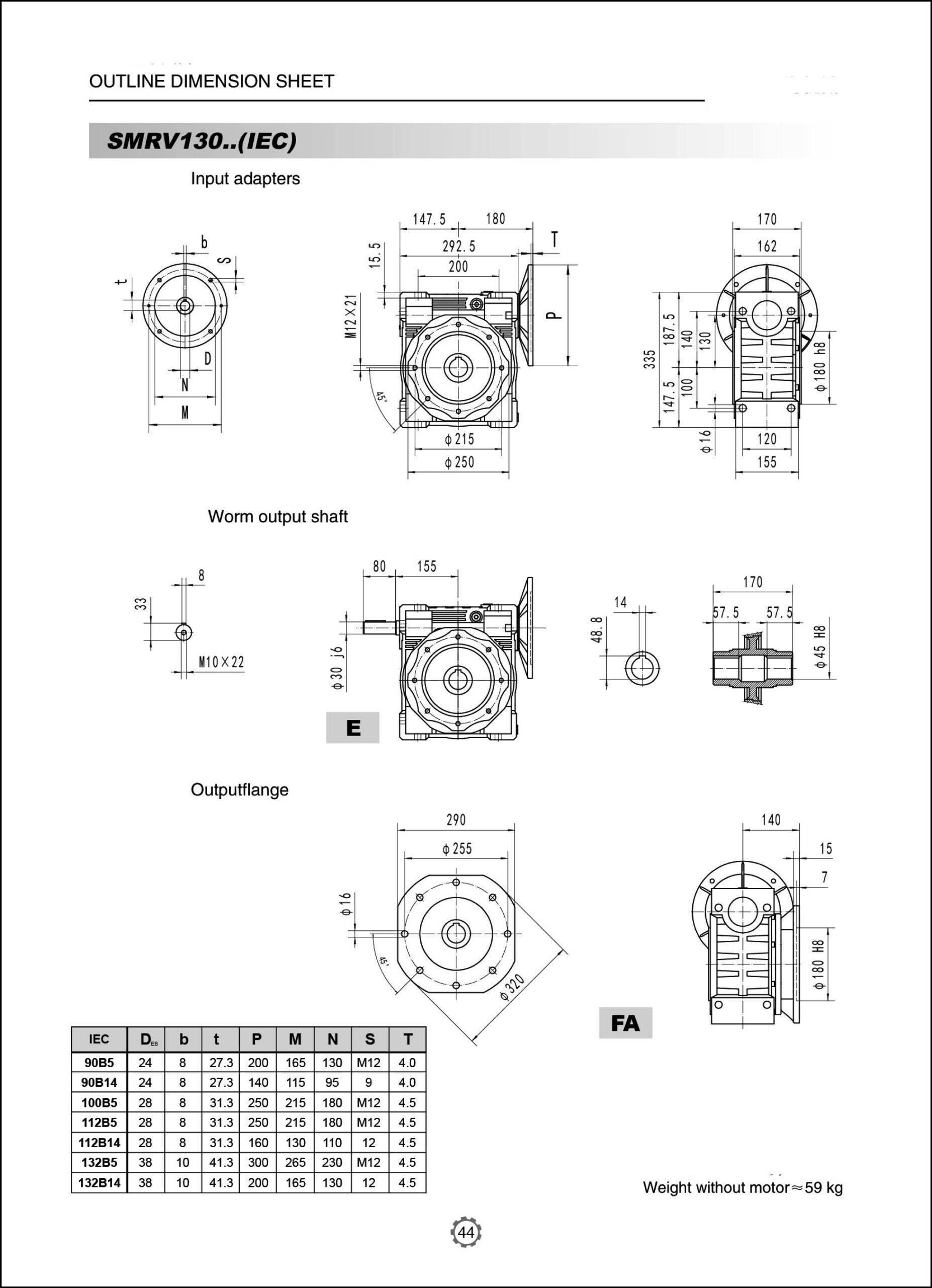 Worm Drive Gearbox NMRV130 20:1 ratio B5 Flange 24mm input shaft Speed reducer